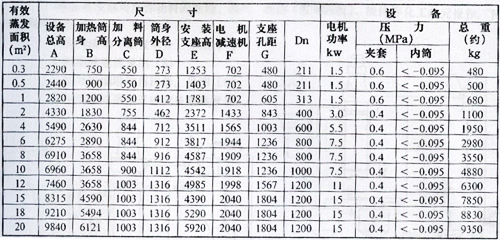 表1:薄膜蒸發(fā)器的外形尺寸及部份技術規(guī)格表